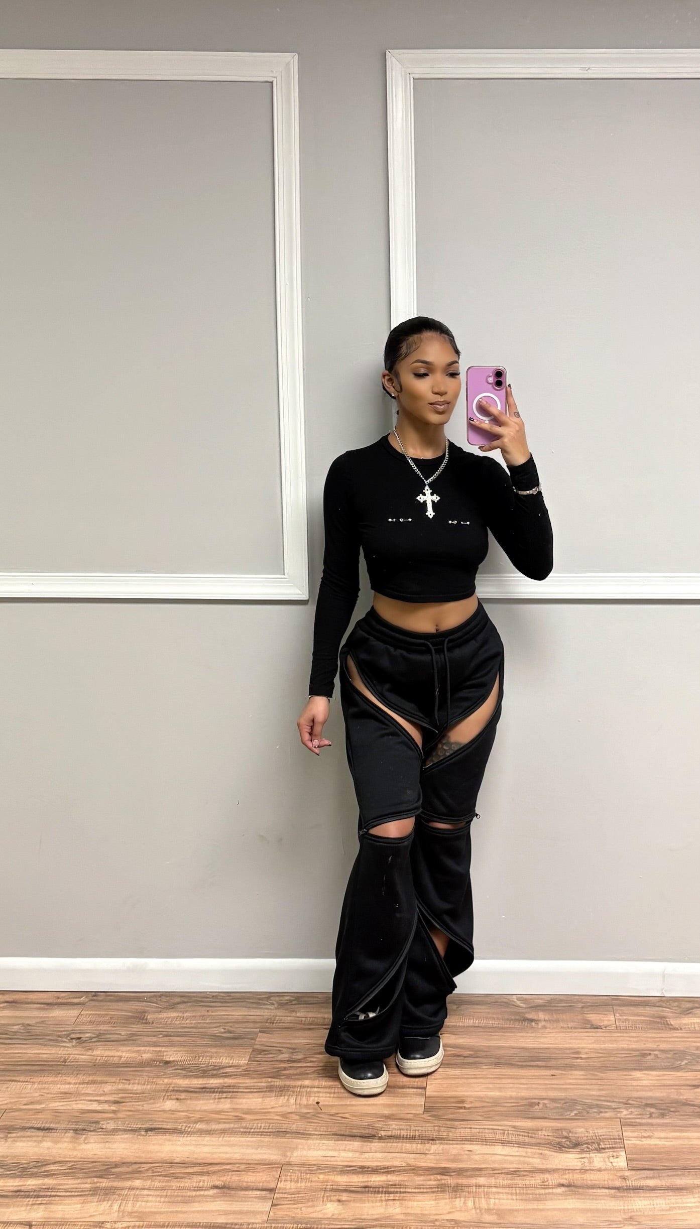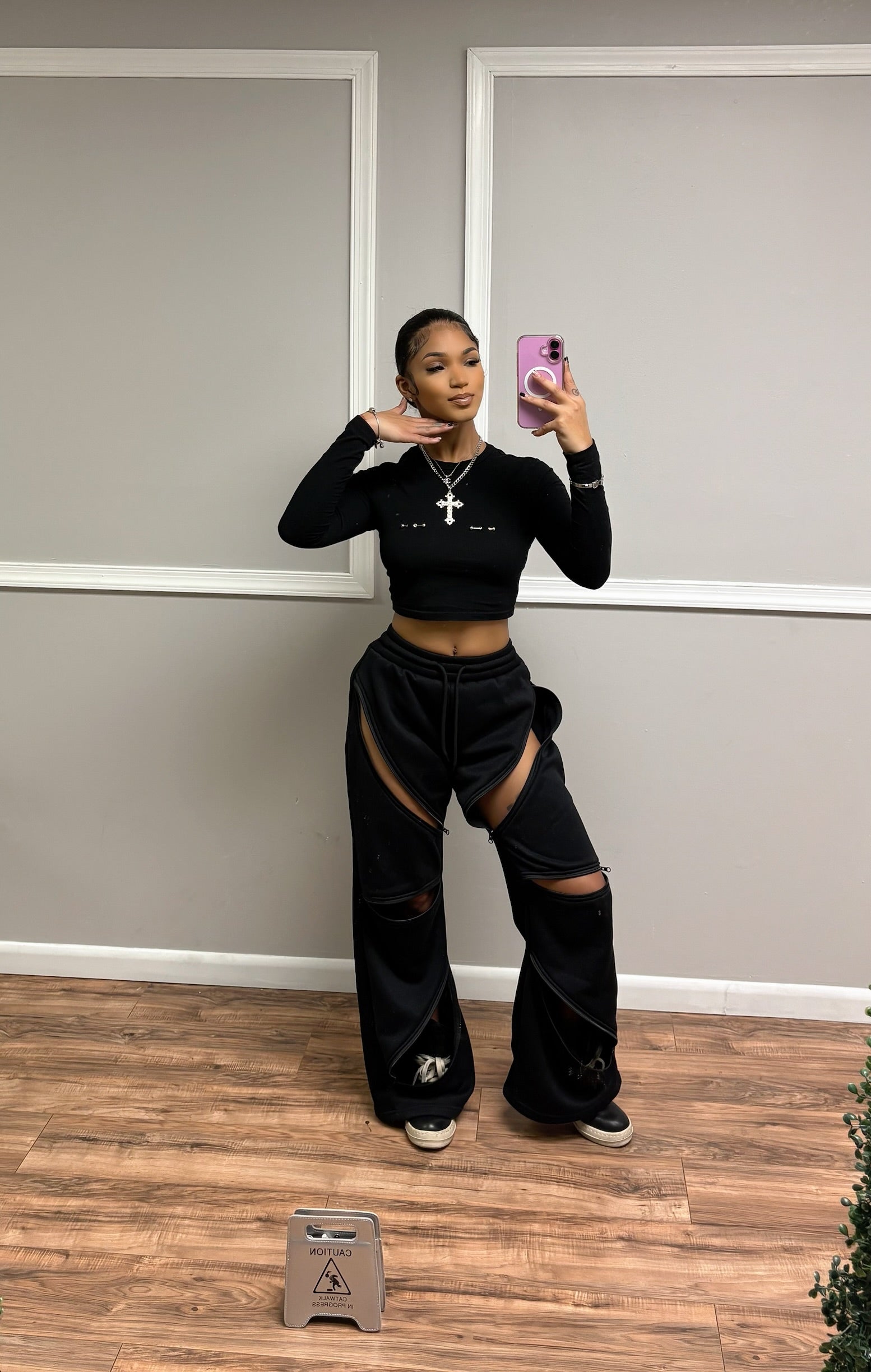 Upgrade your lounge game with “Zee Sweats”. These black sweatpants feature a stylishly wide cut and edgy zipper detailing. With functional zippers that can be opened and closed, you'll love the versatility and comfort of these pants. Perfect for a casual day out or a cozy night in.